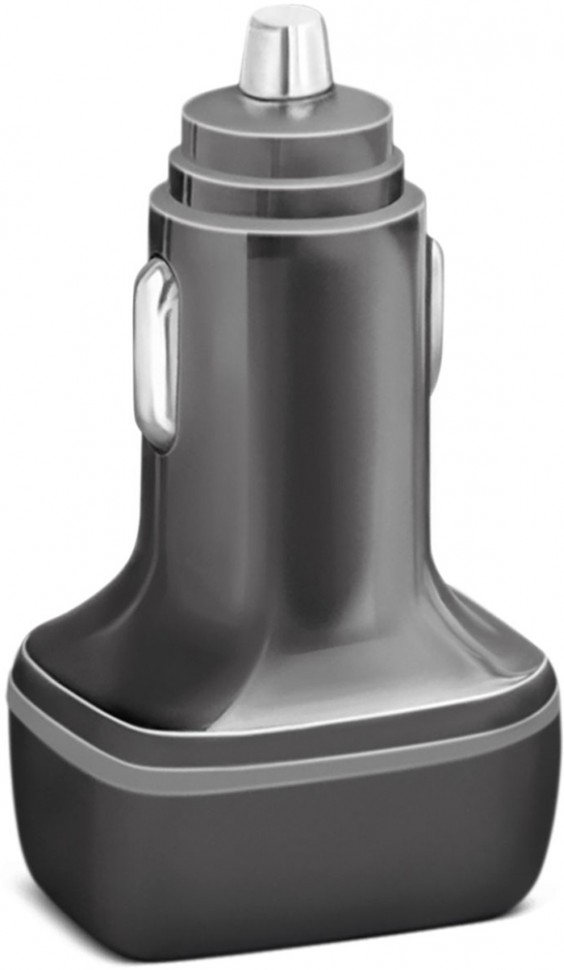 которое подключается через гнездо прикуривателя. Благодаря компактной площадке с тремя разъемами модель не занимает много места на центральной консоли автомобиля. А обтекаемая форма корпуса, лишенная острых углов, не позволяет шнурам цепляться за АЗУ.